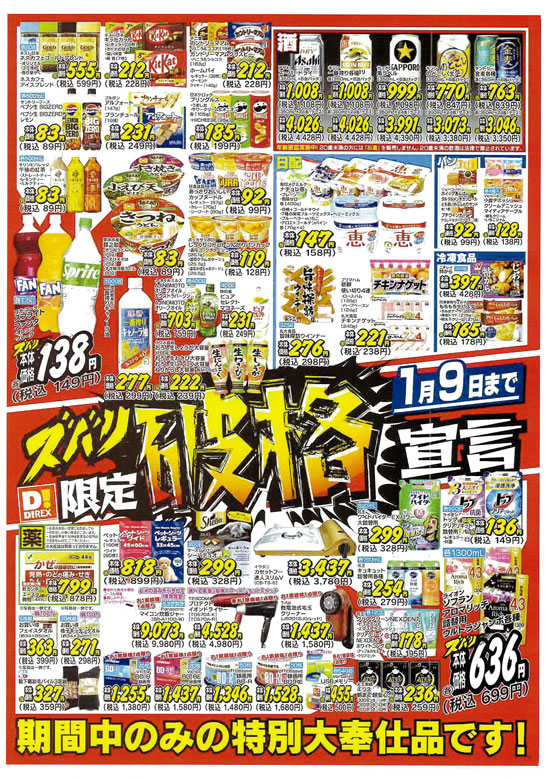下記はダイレックスの月間特売(R7年12月10日~R8年1月09日)となります。