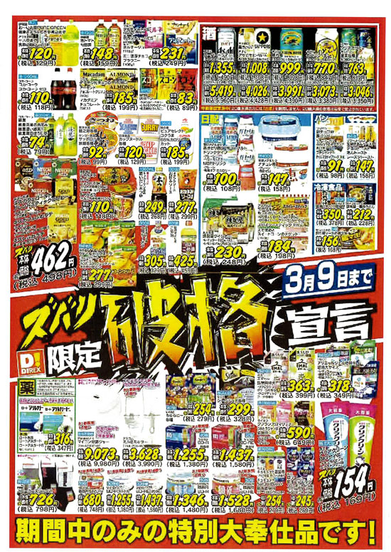 下記はダイレックスの月間特売(R8年2月10日~R8年3月09日)となります。